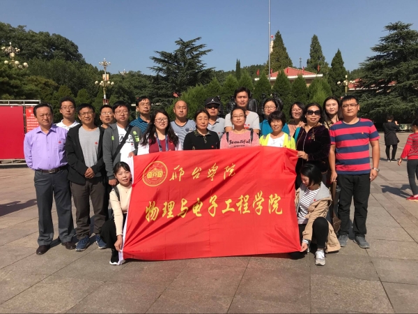 为深入学习贯彻党的十九大精神,将“两学一做”学习教育推向常态化制度化,增强理论联系实际的能力,2018年9月29日,物电学院党委组织以“传承红色精神,强化责任担当”为主题的党日活动,我院党员教师赴著名革命圣地西柏坡,了解中国共产党在西柏坡辉煌的革命历史,领悟西柏坡精神的丰富内涵和时代特征,强化责任担当意识。