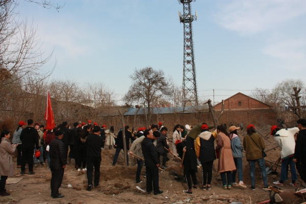 2019年3月11日下午4点,初等教育学院师生党员、入党积极分子近百人在校园内开展义务植树活动。活动现场,在党委书记张成起带领下,大家挥锹铲土,干劲十足,种下一棵棵幼树,尽管大家浑身是汗、满脚是土,但看着成片植树成果,倍感劳动后的光荣和喜悦。