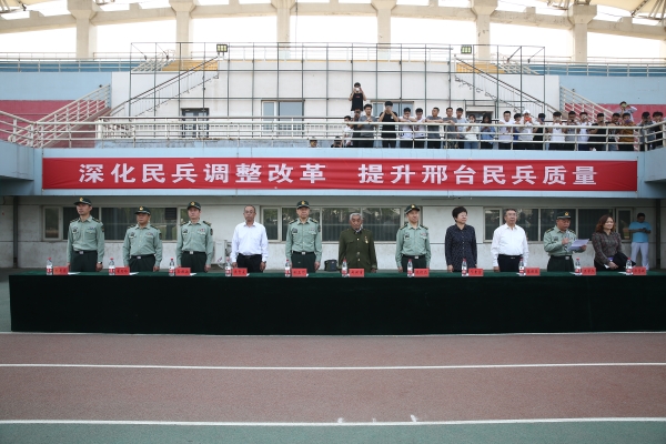 5月9日下午,邢台市民兵整组宣传和大学生征兵宣传教育进高校活动在我校举行。市委常委、军分区司令员陈恒远,军分区政委荆玉师,副市长邓素雪,军分区副司令员孙振波,特邀嘉宾“最美退役军人”吴洪甫、影视演员王宝强,各县市区武装部部长、政委,我校党委书记侯贵星,校长蔡振禹,党委常委徐惠敏以及700余名师生代表参加活动。