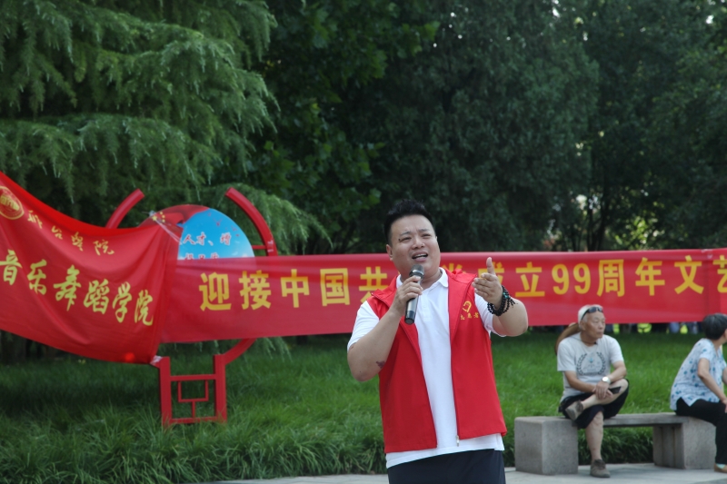 在中国共产党成立99周年即将到来之际,为了以饱满昂扬的精神风貌歌颂党、歌颂祖国,积极推动公民文化素质的不断提升,同时营造健康向上、文明和谐的社会氛围,音乐舞蹈学院党委精心部署,6月30日下午,组织全体党员干部和积极分子在达活泉公园开展“迎接建党99周年文艺志愿服务活动”。