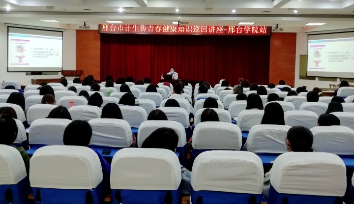 为预防疾病,普及女性青春健康知识,使同学们正确认识和对待自身的生理、心理变化,正确处理遇到的问题,邢台市计生协走进邢台学院,和校团委、校计生办一起组织了“邢台市计生协青春健康知识巡回讲座——邢台学院站”青春健康知识讲座。讲座于10月28日晚在图书馆学术报告厅举行,由校医院主治医师胡立娟医生主讲,题为“青春有你,健康有我”,我校二百多名女生到场学习。