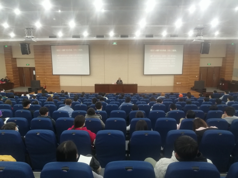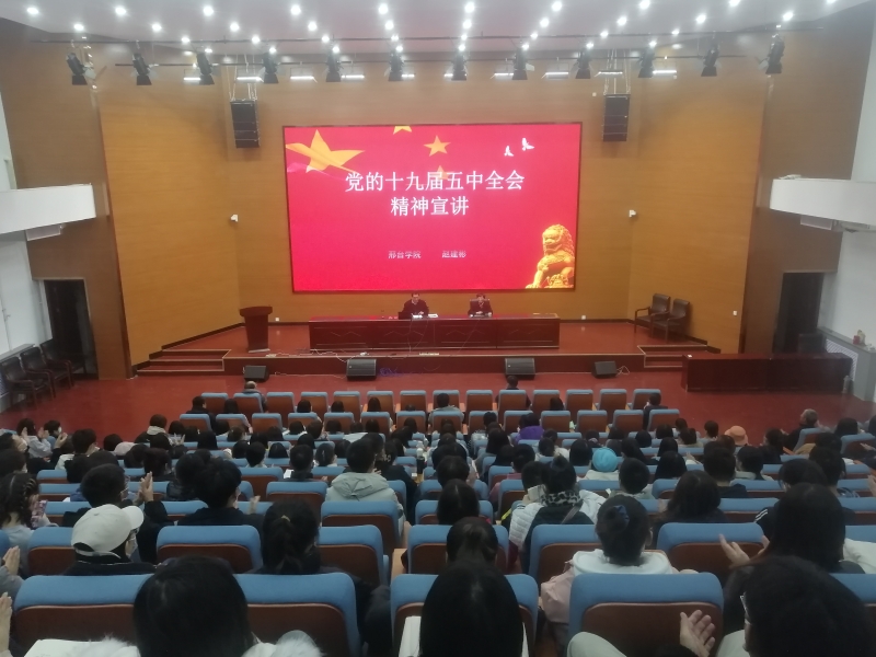 11月23日下午,我校党委副书记赵建彬教授在公教楼学术报告厅为经贸学院和外语国语学院师生宣讲了党的十九届五中全会精神。