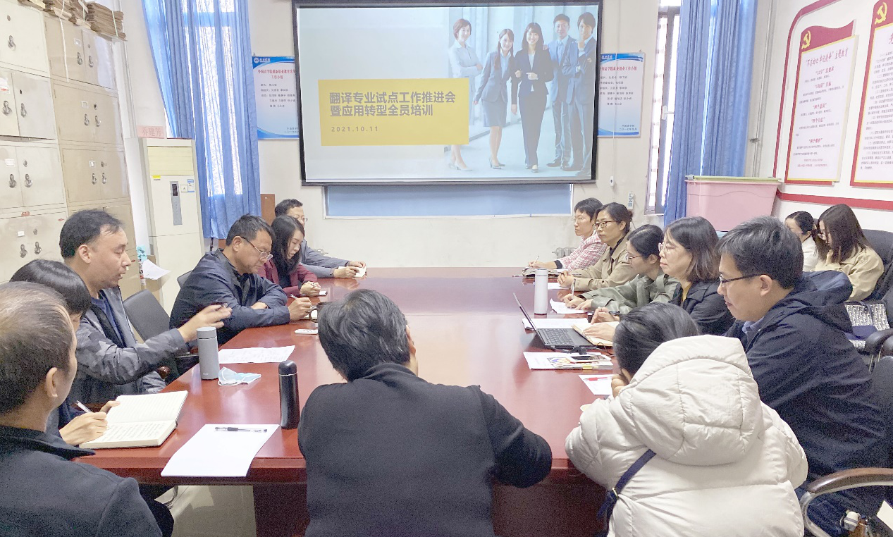 10月11日下午,我校外国语学院召开翻译专业转型试点工作启动会。外国语学院党委书记张成起主持会议,校转型办常务副主任张宏杰到会指导,翻译专业负责人申玉革对转型试点工作进行具体部署,教科办主任赵清丽和翻译专业全体老师参加了会议。